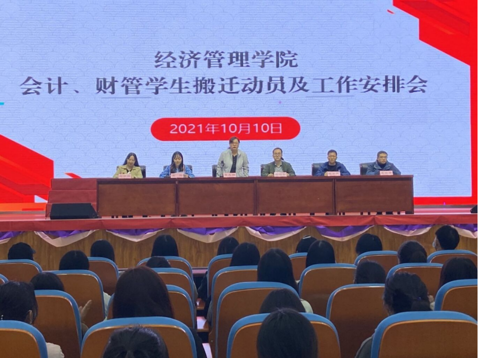 为确保会计、财管专业学生搬迁工作安全有序进行,保障新学期教育教学工作的有序开展,10月10日下午,yl88858永利中国召开会计、财管专业学生搬迁动员暨工作安排大会。大会由团总支书记聂蕴老师主持。学院党总支副书记李兆楠老师和副院长张召哲老师及相关辅导员出席会议,290余名学生参加此次会议。
