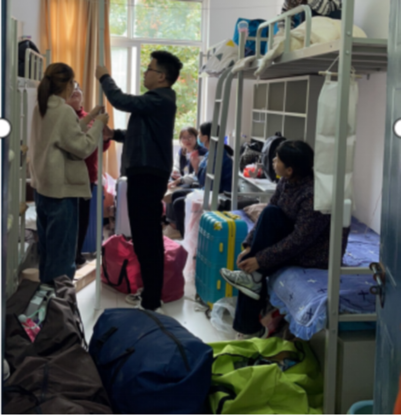本次搬迁任务时间紧、任务重,但这丝毫没有影响到师生志愿者的热情和干劲。党员师生们前往所负责的学生宿舍,以饱满的热情投入到了紧张有序的搬迁工作中。期间,师生的身影在宿舍楼和货车间来回穿梭,帮助同学将打包好的行李搬运至指定存放点。他们以实际行动诠释了党的无私奉献的服务精神,在实践中回归服务群众的初心,充分体现教师党员、团员青年的先锋模范带头作用,展现出良好的精神风貌,助力搬迁工作的顺利开展。衣服虽然都沾满了尘土,但大家脸上却洋溢着笑容,因为他们感受到了志愿服务带来的快乐和充实,也感受到胸前党员党徽带来的无穷力量。