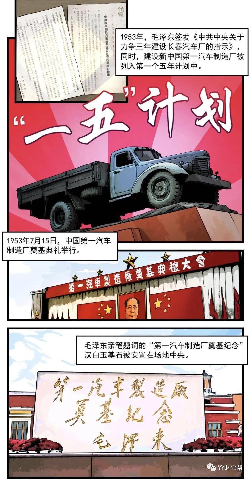 1953年7月15日,中国第一汽车制造厂奠基典礼举行。毛泽东亲笔题词的“第一汽车制造厂奠基纪念”汉白玉基石被安置在场地中央。奠基仪式后,一汽工程正式上马,成千上万的建设大军开始从祖国的四面八方汇聚而来。