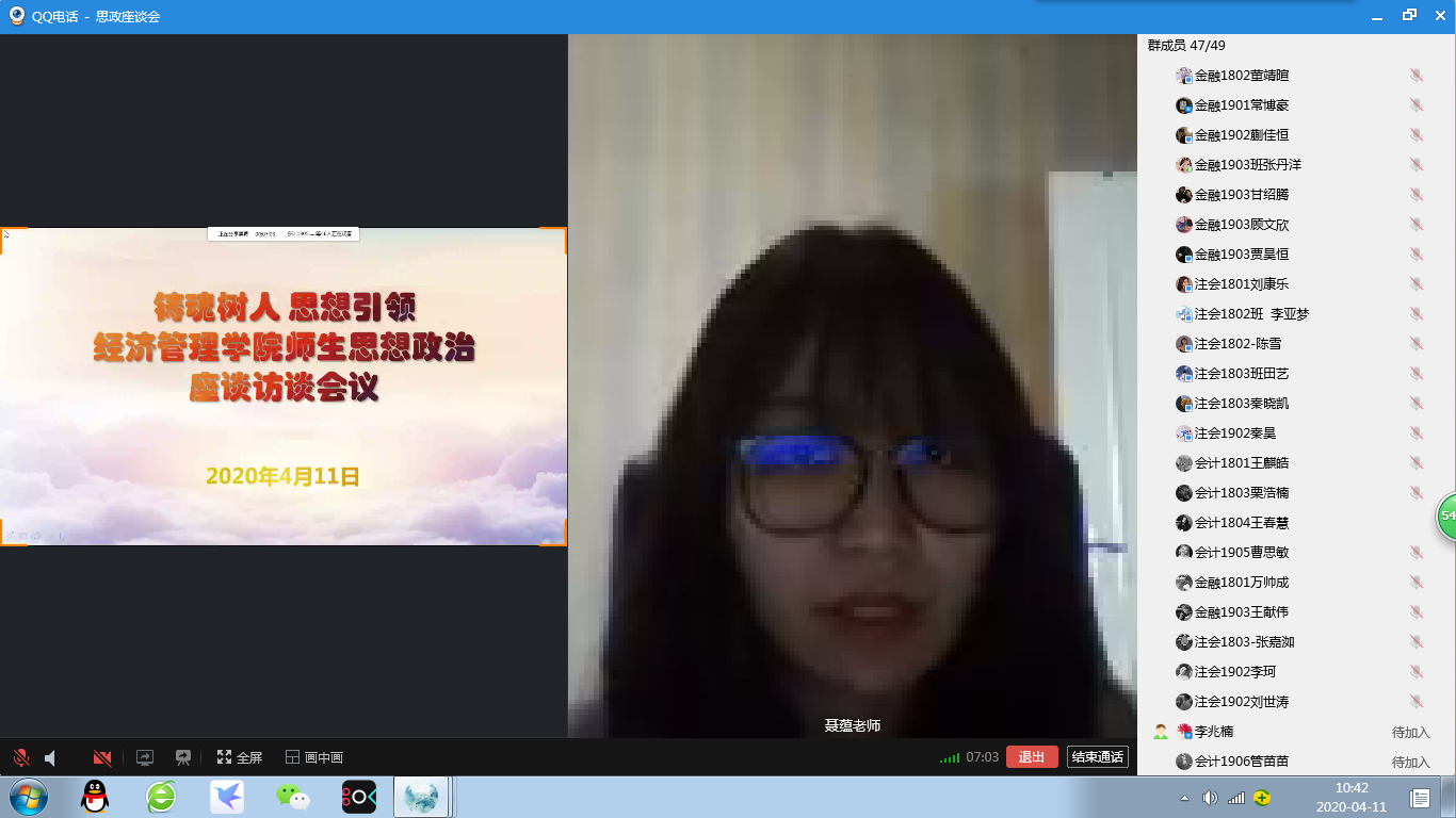 为贯彻落实《2020年高校师生思想政治状况滚动调查工作实施方案》,深入了解全院师生思想政治状况,进一步开展高校思想政治教育工作,yl88858永利中国于2020年4月11日开展2020年师生思想政治状况线上座谈访谈会议。