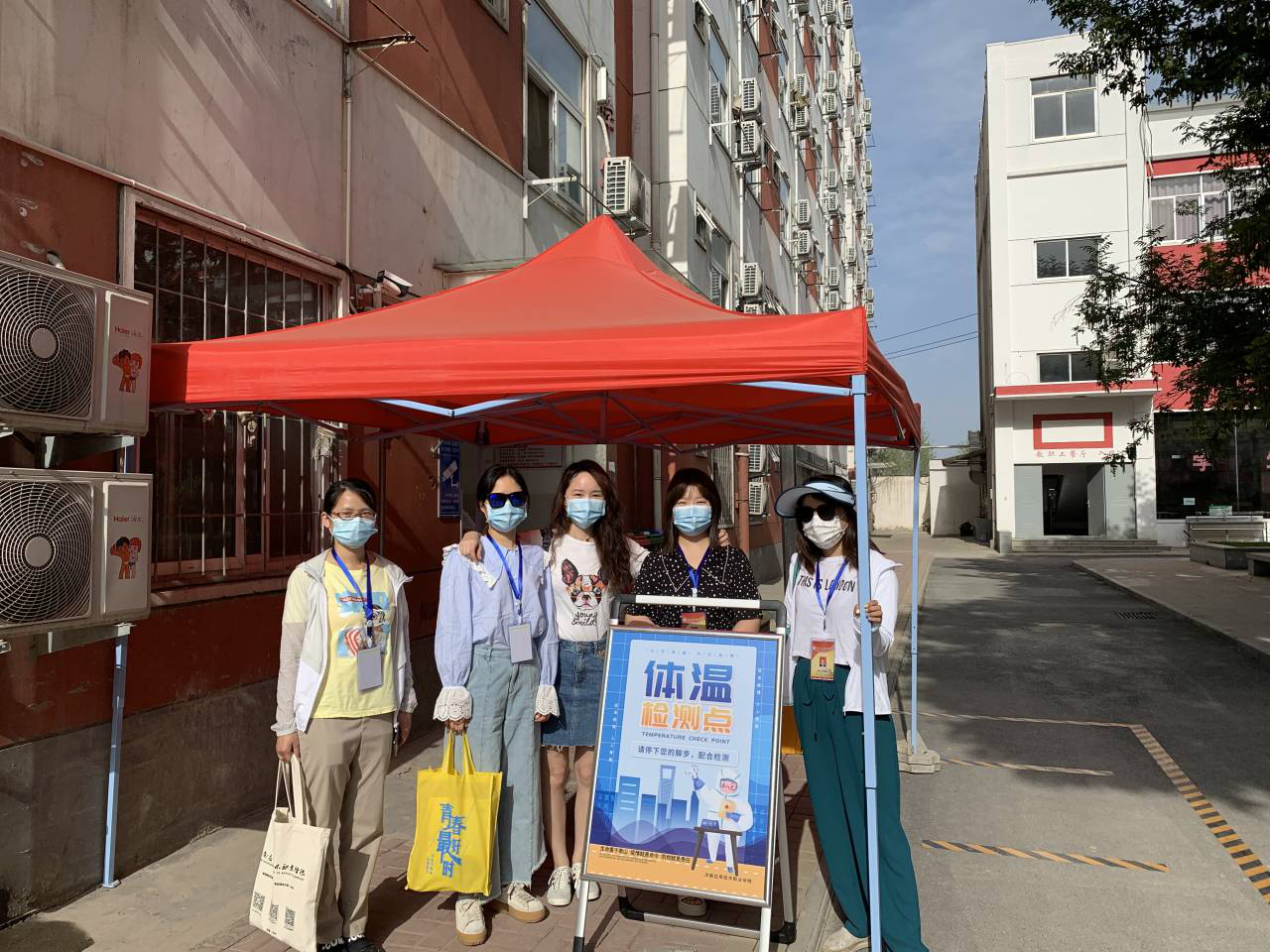 早上6:00,全体党员在学校南门集合完毕,党总支书记李兆楠同志作动员讲话。她指出一名党员就是一面旗帜,在此次主题党日活动中,大家要主动亮身份、当先锋,为返校实习学生打通“最后一公里”,为学校整体安全保驾护航。随后,全体党员老师就在学生返校实习报到点搭起了帐篷,设立了党员服务点,备齐了相关物品。服务点搭起后,全体党员以支部为小组,在指定的接待点,引导返校学生有序排队,进行体温检测、行李消毒、绿码查验、身份核实。进校后,到宿舍辅导员老师处报到办理相关手续,后党员教师利用电瓶车、手推车、三轮车等工具将学生的行李、物品搬运出宿舍。大家用热情周到的服务,不仅让返校学生感受到温暖,也为健康校园筑起安全防线。