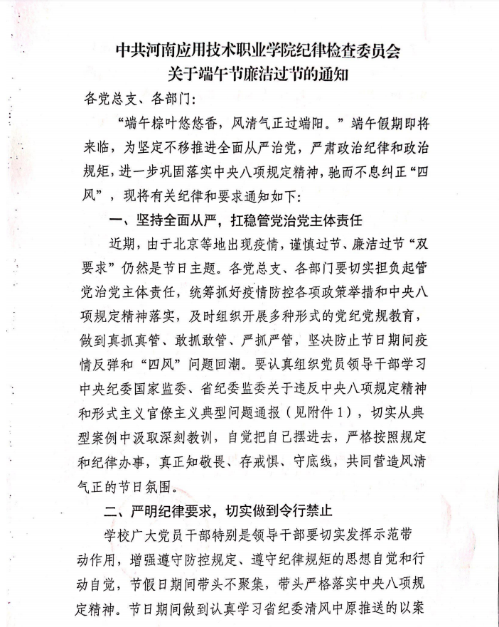 中共yl8858永利集团纪律检查委员会关于端午节廉洁过节的通知