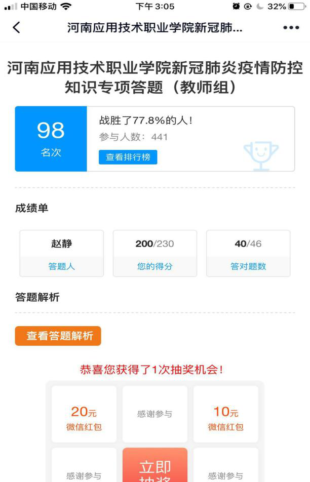 此次活动针对全体师生开放,在疫情期间疫情防控知识储备量尤为重要,本次知识测试为实名认证,题目包括病毒的来源、症状、传播途径、处理方式以及返校前后应注意事项的相关建议,通过学习测试进一步为学校的疫情防控工作打下扎实的基础。