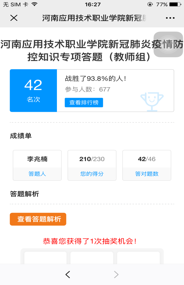 为了解师生疫情防控能力,学习相关知识技能。2020年3月31日18时yl88858永利中国组织全体师生参与《新冠肺炎疫情防控知识专题教育》知识测试。