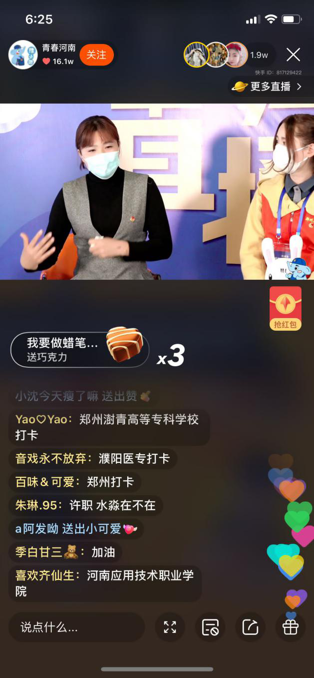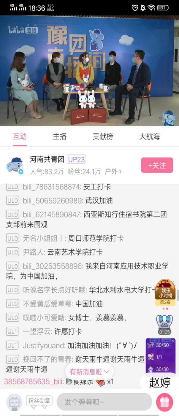 直播活动邀请了不畏风险远赴武汉战疫一线医护人员邵青青、社区联防联控疫青年博士志愿者赵旋琪、河南“小汤山”医院建设者(河南中医药大学学生)朱顺超、省青年五四奖章获得者刘嘉尧等先锋模范作为嘉宾,他们用一个又一个生动感人的事迹勾勒了“90后”战疫青年不畏艰险、冲锋在前的坚强形象,担起抗击新冠肺炎疫情的重任,展现着新时代的硬核担当,亮出无悔的青春底色,感染着每一个坚定信念、立志奋斗青年学子。