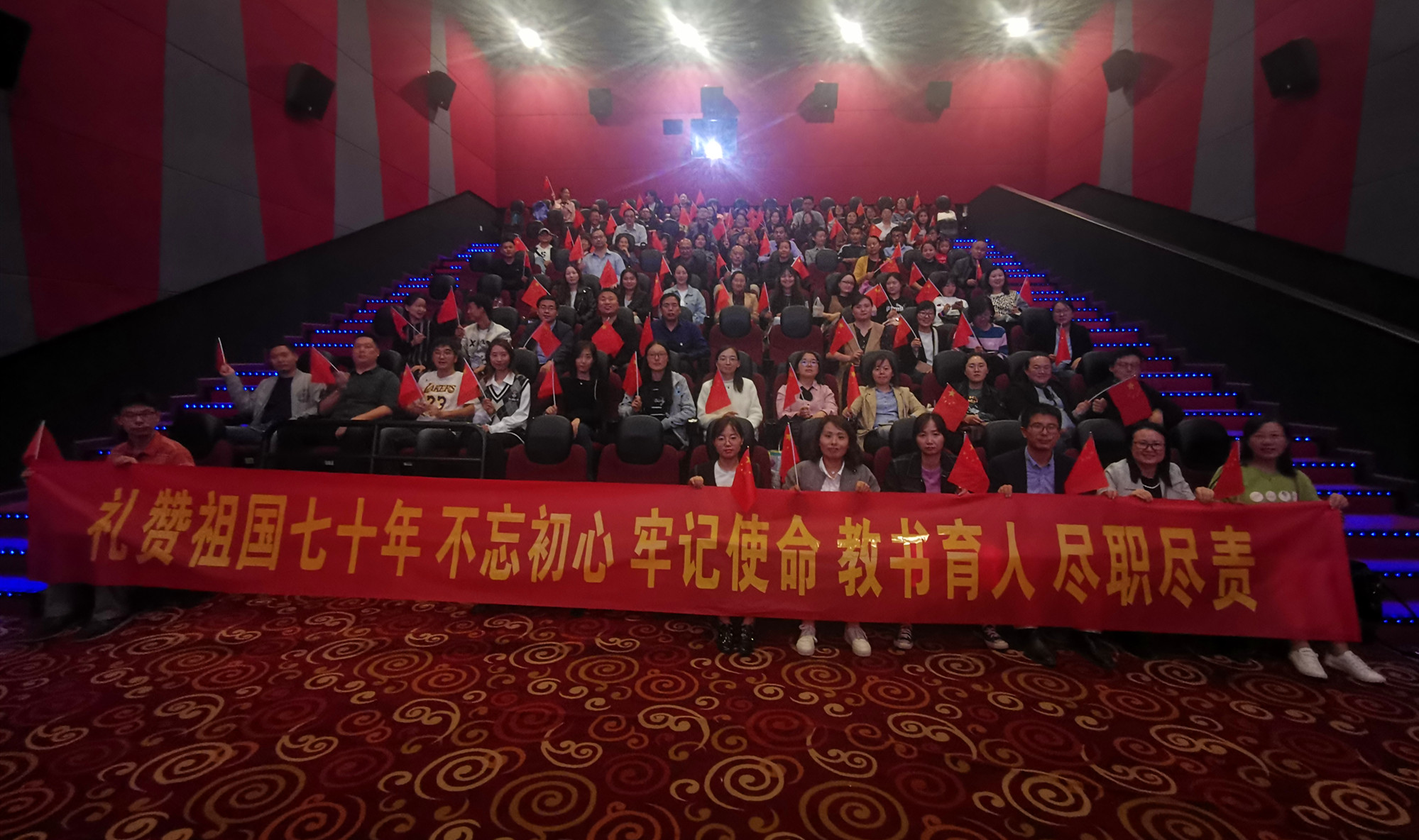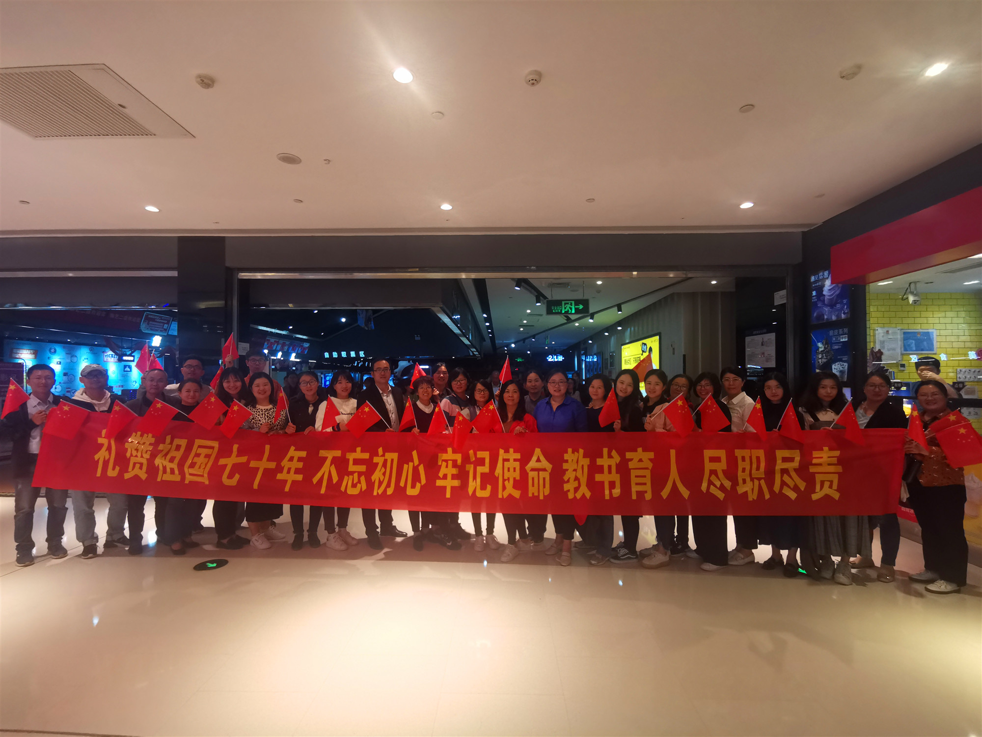 庆祝新中国成立70周年,进一步深化开展“不忘初心、牢记使命”主题教育,充分发挥红色电影资源优势,大力弘扬爱国主义精神,yl88858永利中国党总支于2019年10月8日组织全体党员及教师进行了“我和我的祖国”观影主题教育活动。