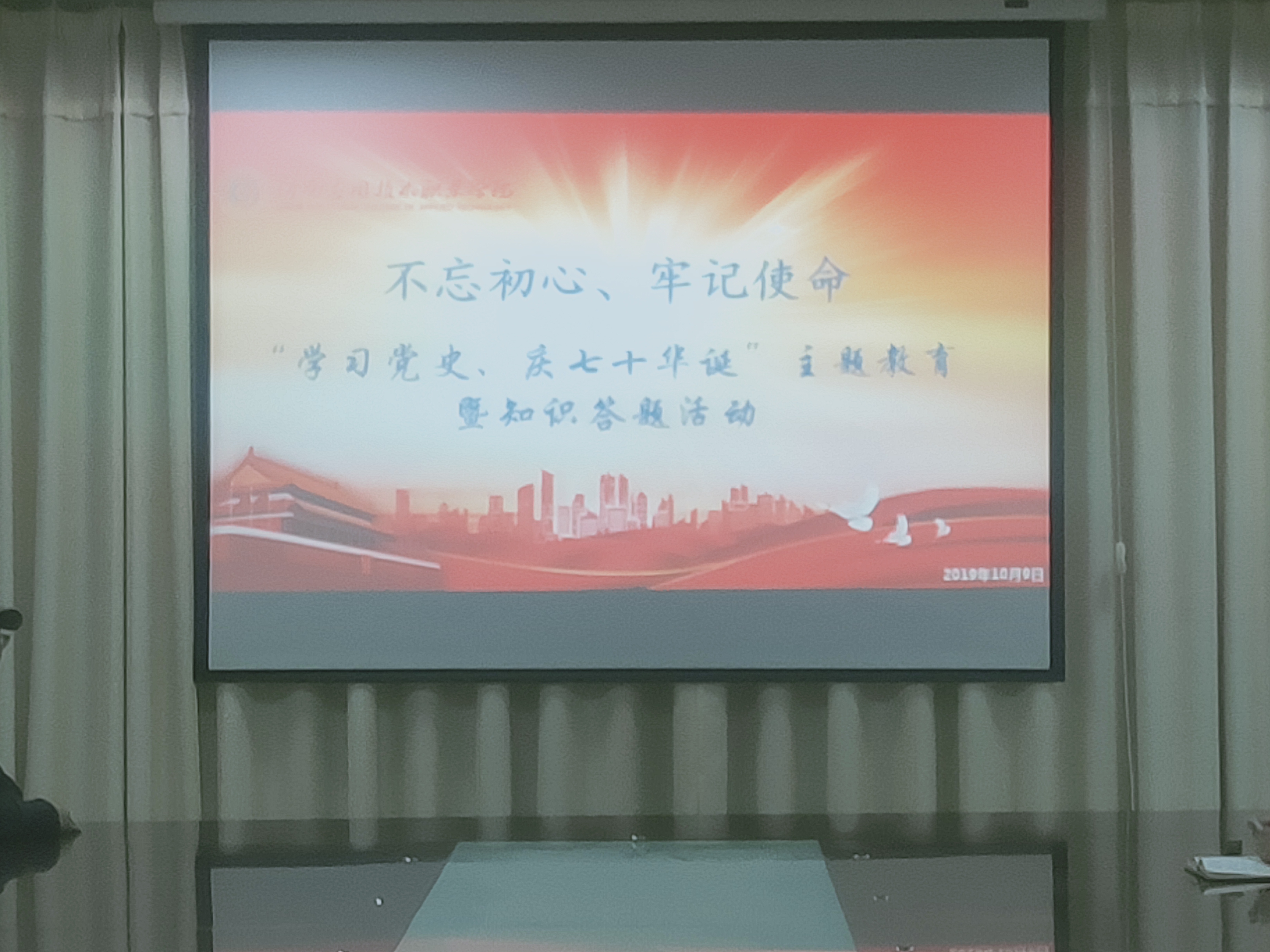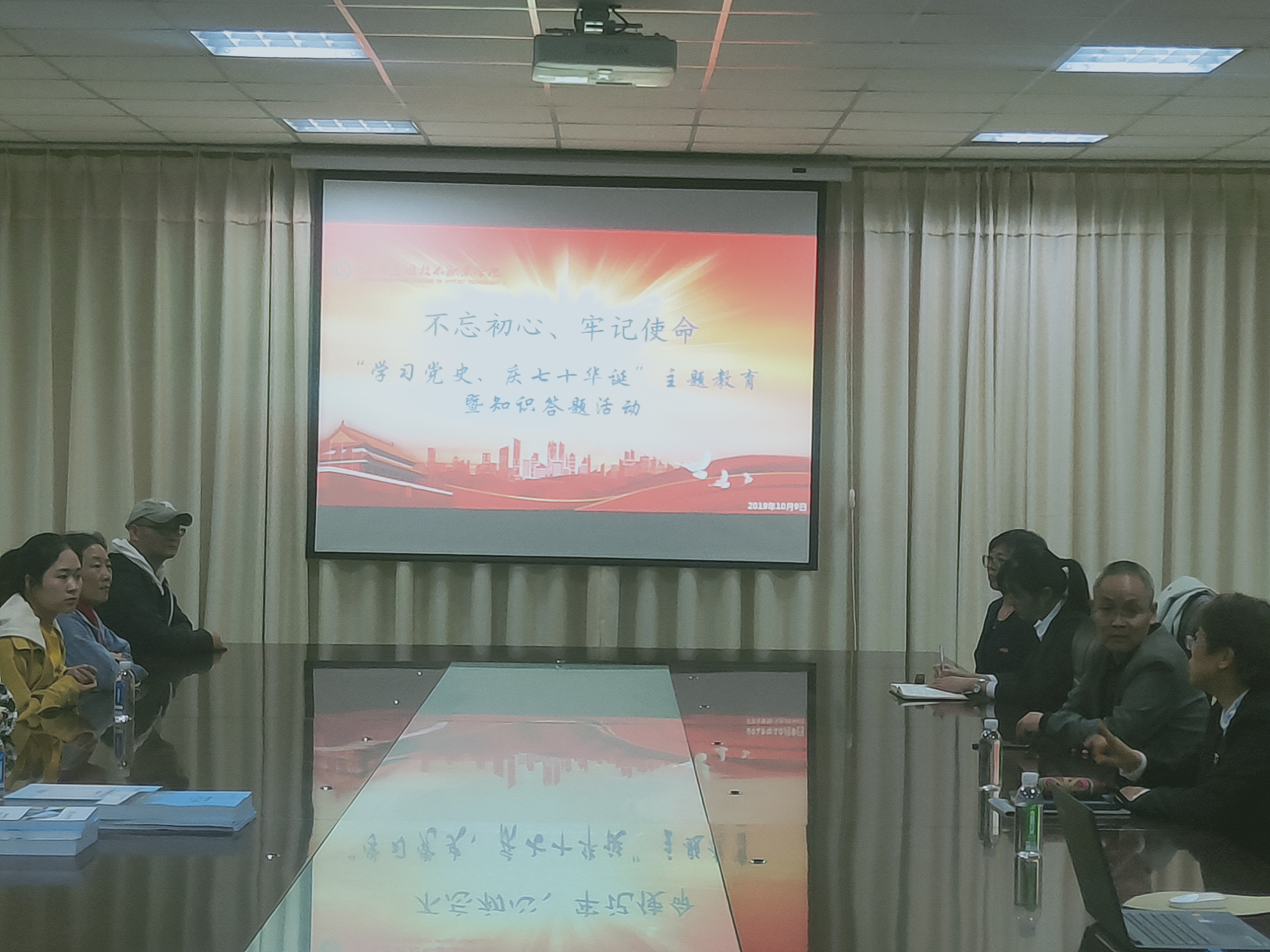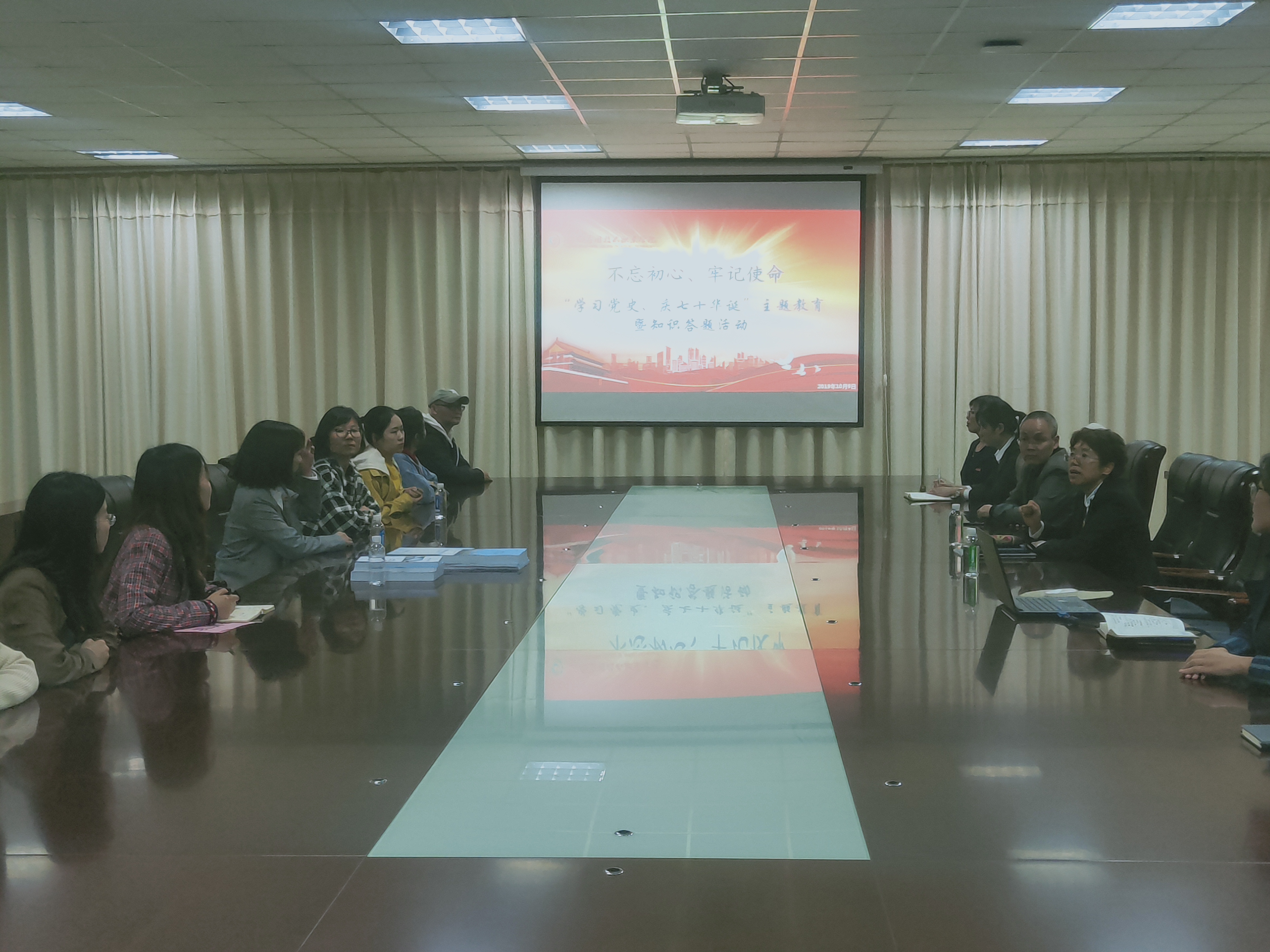 2019年10月9日,yl88858永利中国党总支召开“不忘初心、牢记使命 学习党史 庆七十年华诞”主题教育暨知识答题活动动员会。此次会议由学院党总支书记袁清香同志主持。