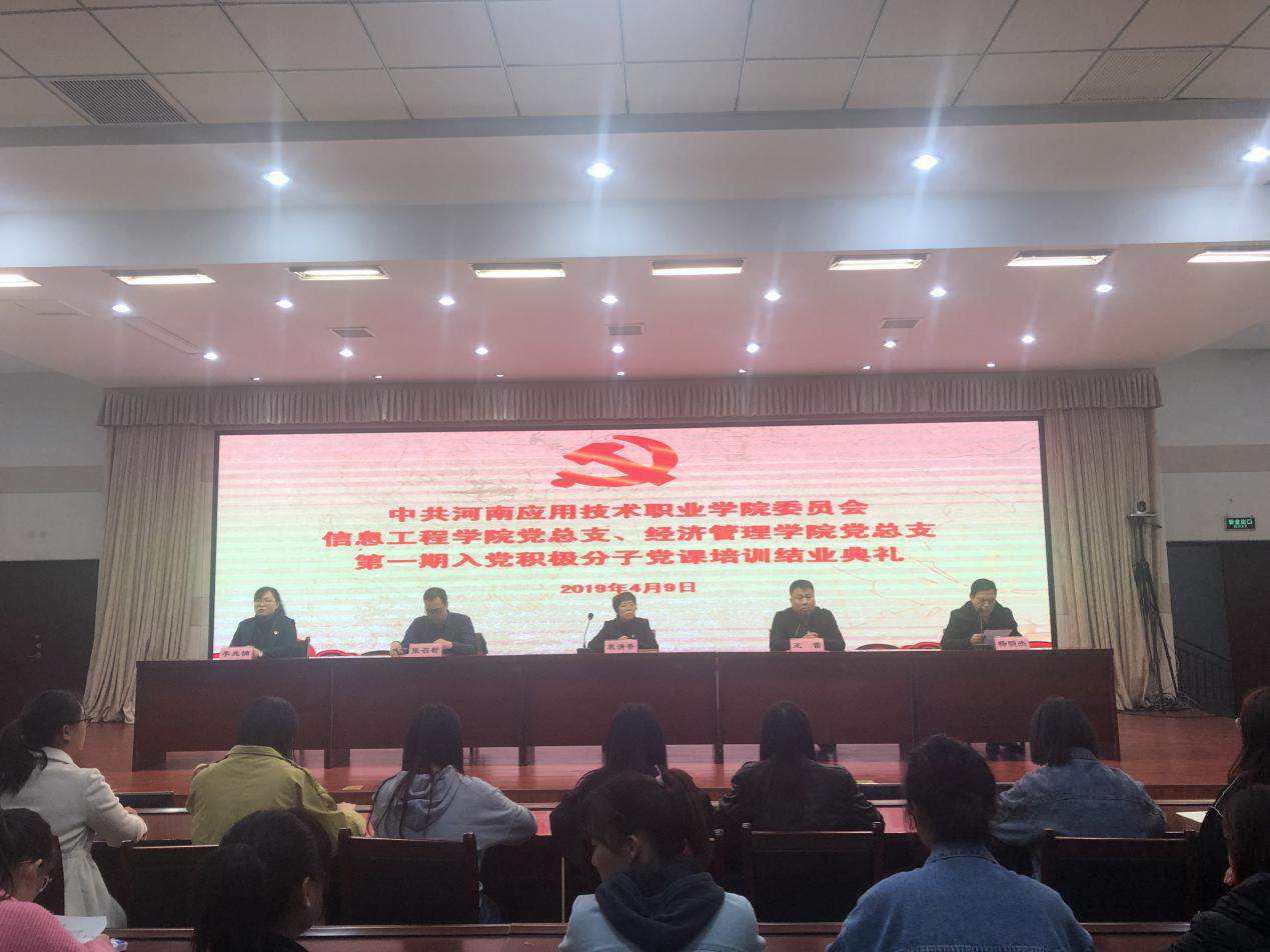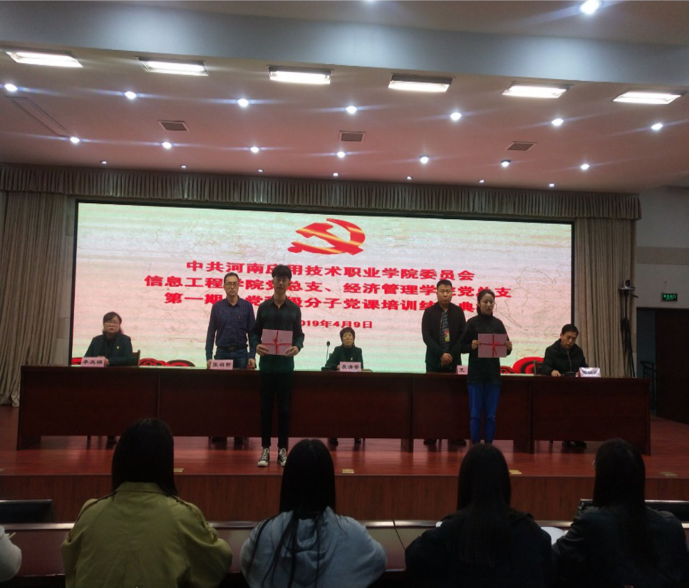 为引导入党积极分子严格以党员的标准要求自己,并坚定自我理想信念,不忘入党初心,继续前行。2019年4月9日14点,yl88858永利中国党总支联合信息工程学院党总支在实训楼二楼会议室开展了入党积极分子培训结业典礼。本次结业典礼由yl88858永利中国党总支书记袁清香老师、信息工程学院院长王雷老师、yl88858永利中国院长张召哲老师、信息工程学院党总支副书记杨明杰老师、yl88858永利中国党总支副书记李兆楠老师及全体顺利结业的120名入党积极分子参加。