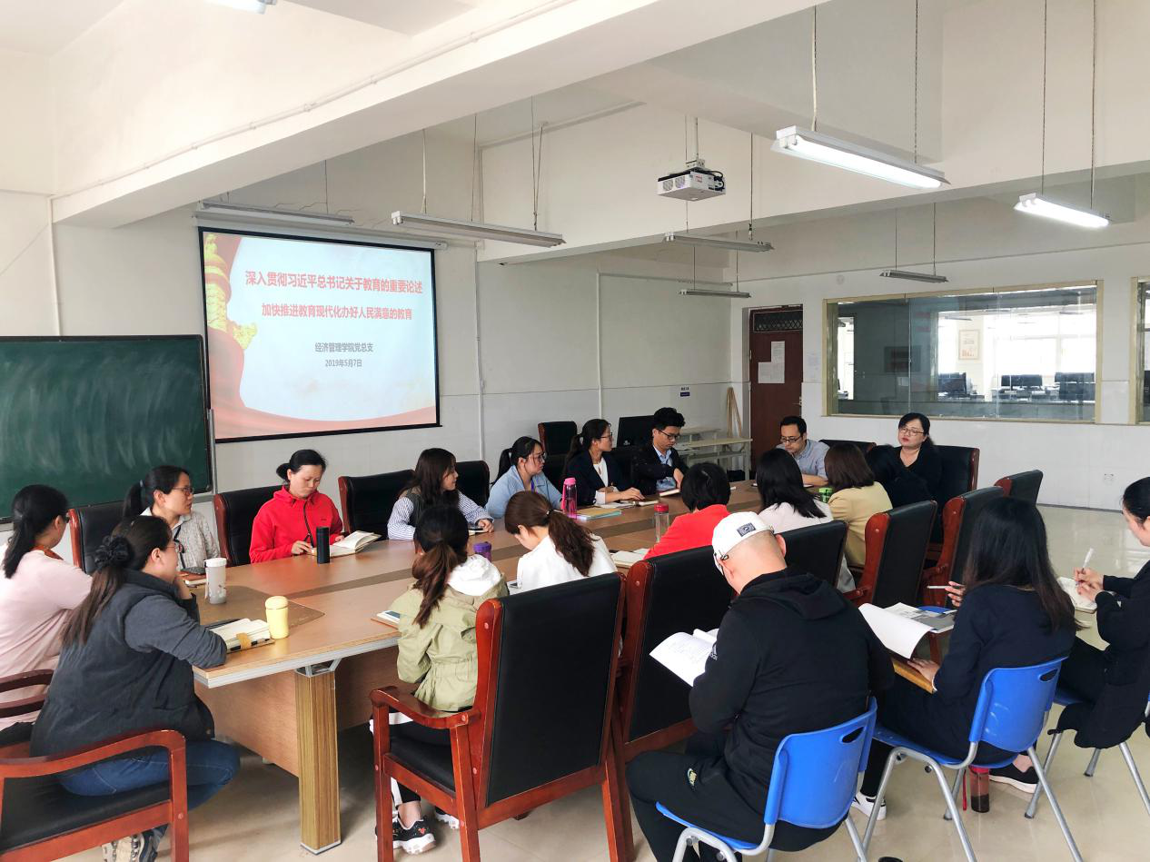 2019年5月7日,yl88858永利中国党总支组织全体教职工召开专题学习会议,集中学习贯彻全省教育大会精神。党总支副书记李兆楠老师主持会议。