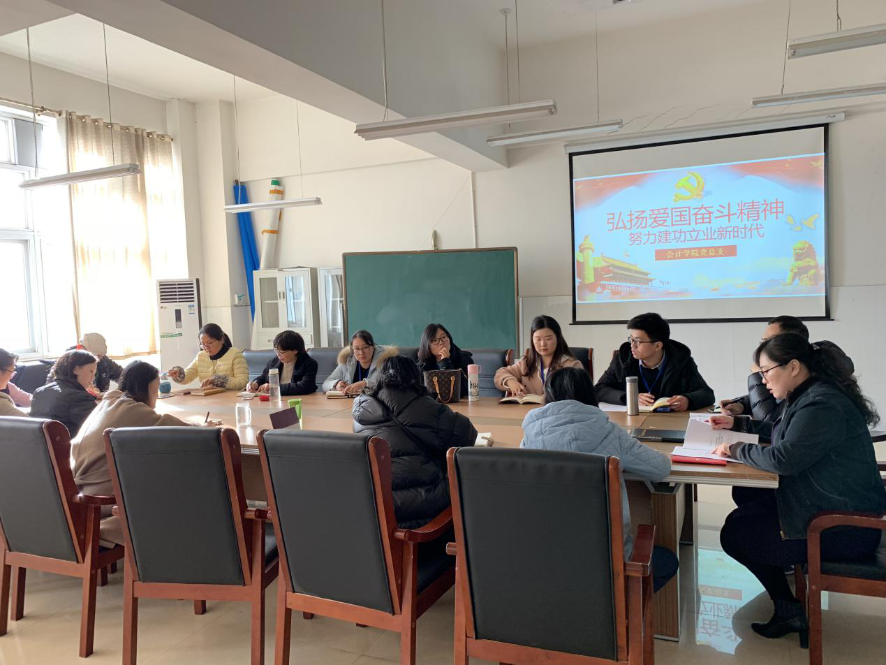 随后,会计学院教职工集体学习了党委下发的《关于在全校深入开展“弘扬爱国奋斗精神建功立业新时代”活动的实施方案》及《yl8858永利集团哲学社会科学报告会、研讨会、讲座、论坛管理办法》的通知。全体教职工纷纷表示要积极参加各项活动在新时代自觉弘扬践行爱国奋斗精神,不忘初心、牢记使命。除此之外进一步规范了相关活动管理行为,维护学校正常的教学秩序和活动秩序,保障学生合法权益。会计学院教师通过学习交流,把握学院管理办法的新理念、新内涵、新要求。