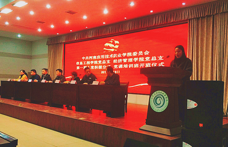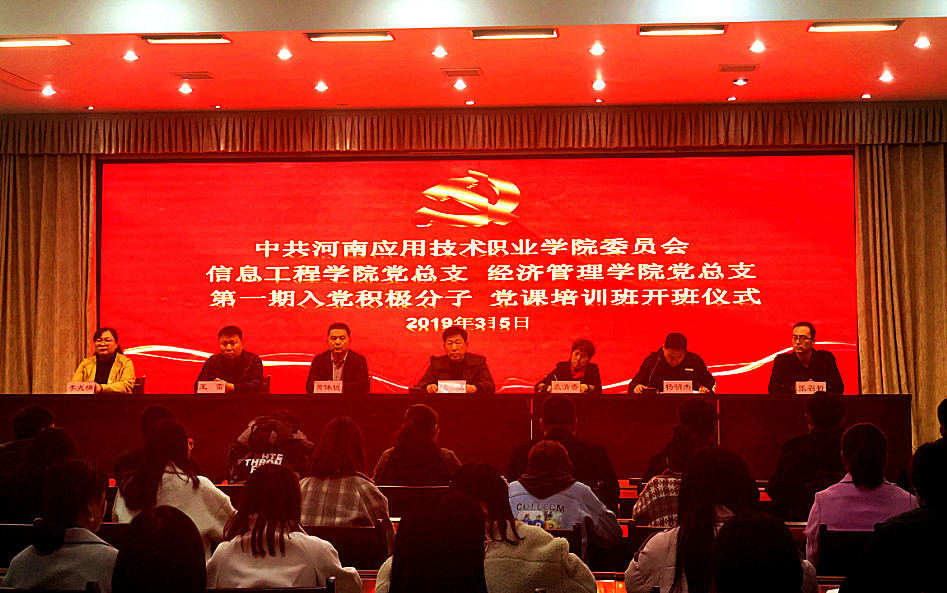 2019年3月5日下午,yl88858永利中国党总支、信息工程学院党总支第一期入党积极分子党课培训班开班仪式在实训楼二楼会议室隆重举行。两总支书记及全体支委委员、本期入党积极分子出席大会。信息工程学院党总支副书记杨明杰主持大会。