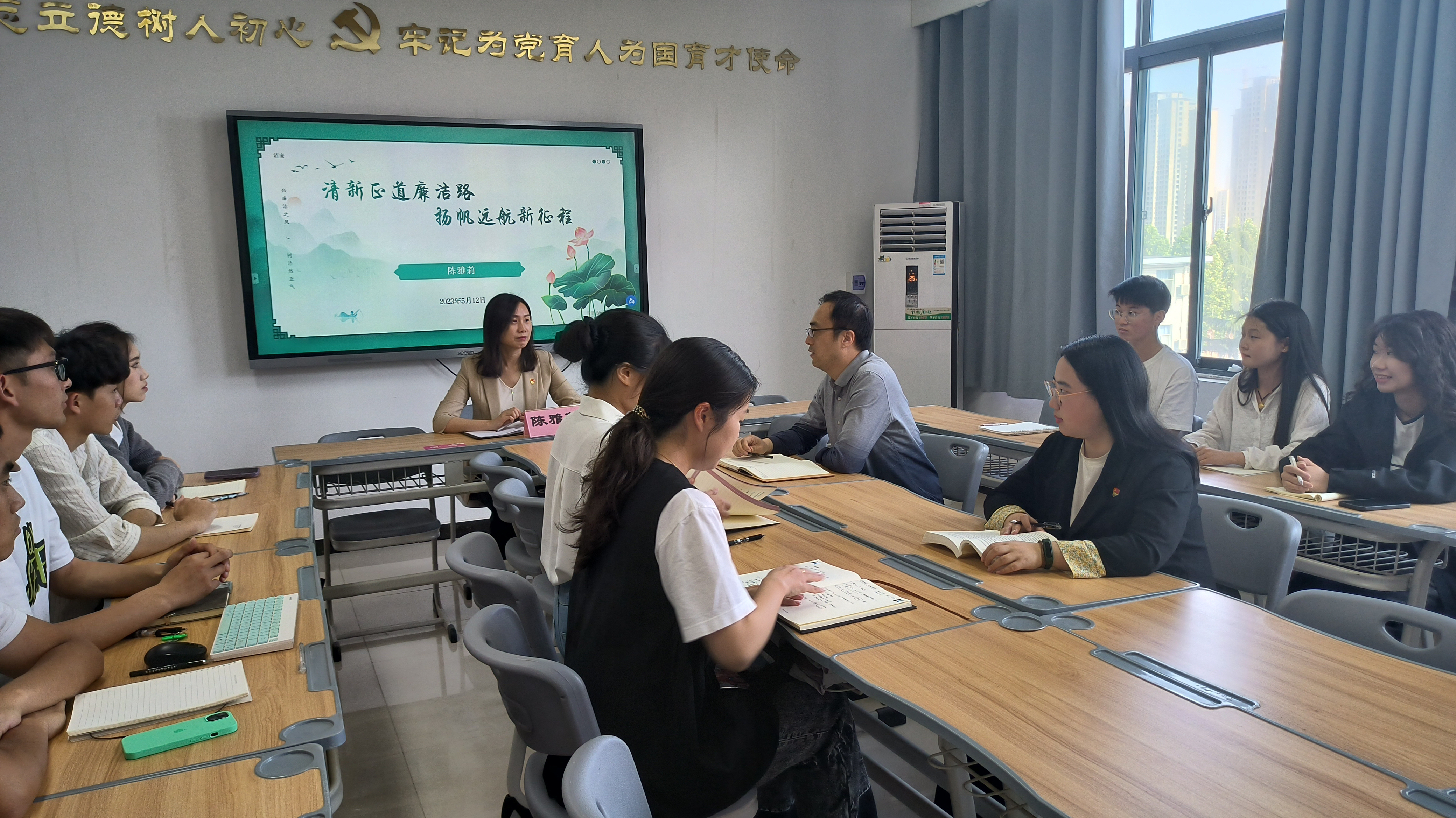 为营造风清气正的校园廉洁文化氛围,助推推进清廉学校的“五个一工程”建设,2023年5月12日下午,学校纪委书记为yl88858永利中国党总支讲授《清新正道廉洁路 扬帆远航新征程》主题党课,党员教师代表、2021级入党积极分子参加学习。陈雅莉重点做以下三方面的讲授: