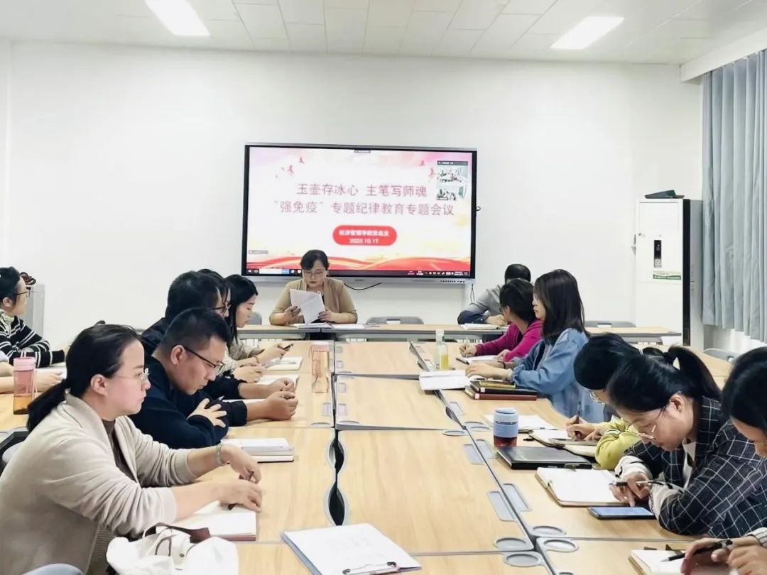 为深入贯彻落实党的二十大精神和习近平总书记关于严明党的纪律和规矩的重要论述,全面加强党的纪律建设,10月17日,yl88858永利中国党总支在郑州校区A505、开封校区B306同时召开2023年第四季度第一次“强免疫”专题纪律教育。书记李兆楠主持会议,全体党员教师参加学习。