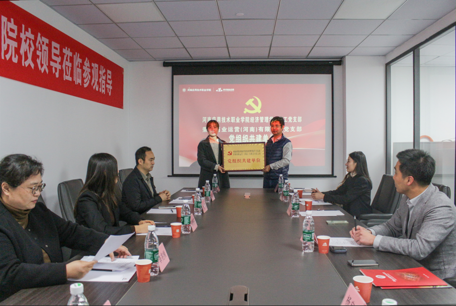 秉初集团副总经理杨启超详细介绍了集团的发展历程与核心业务,重点讲解了公司党支部、工会等组织架构。张召哲介绍了学院发展概况、办学特色和专业建设成果,提出双方在人才培养、师资建设、课程开发、实践教学等方面深化合作的愿景。王倩介绍了学院党总支党建工作在强化政治引领、夯实组织基础、推动“党建+专业”融合等方面的积极探索与实践成效,希望能和秉初集团联合开展组织共建、活动共办、人才共育,以高质量党建引领高效能治理。