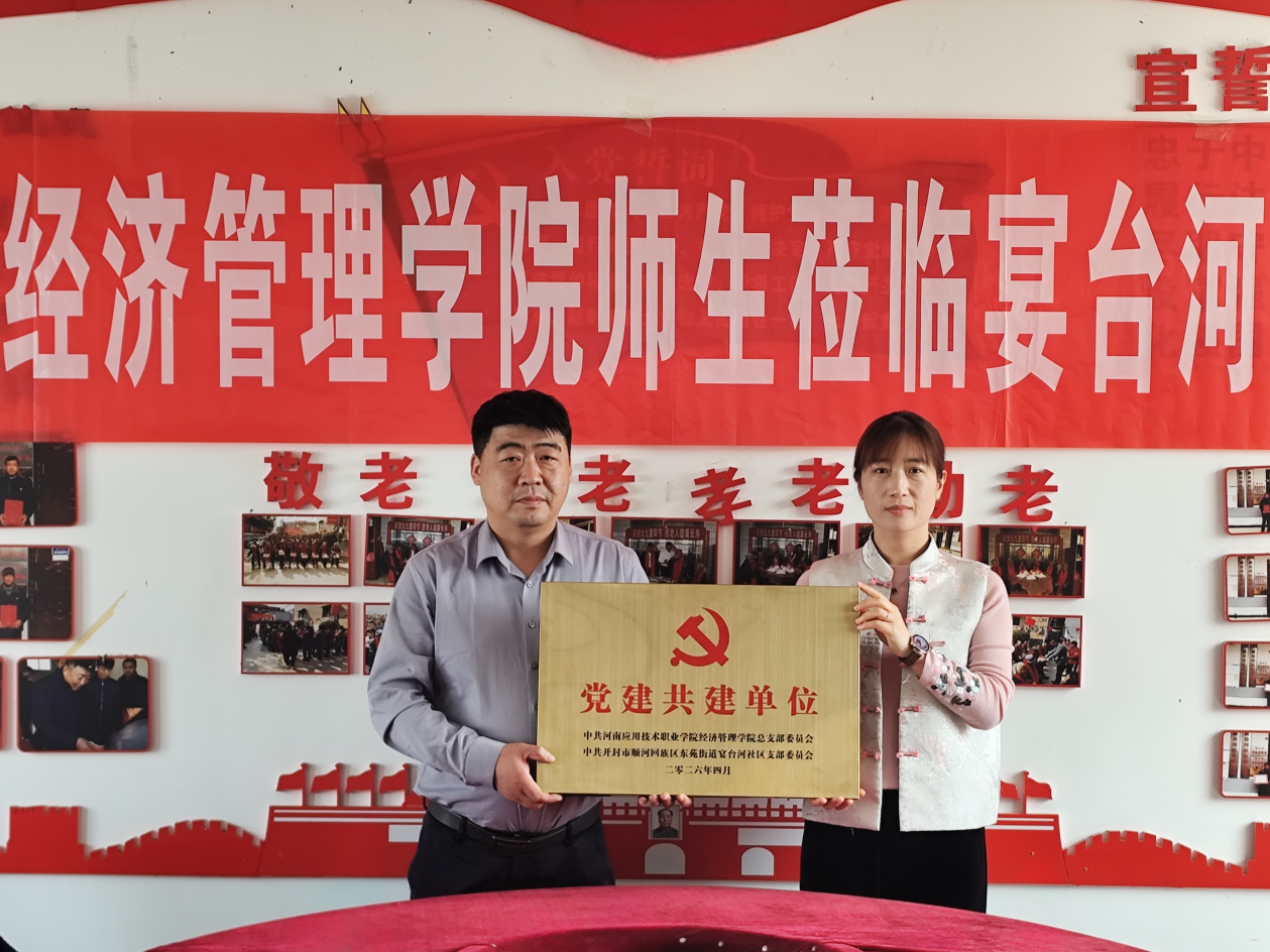 为深入学习贯彻习近平新时代中国特色社会主义思想和党的二十大精神,深化校地党建共建合作,充分发挥高校专业资源优势助力乡村振兴,4月2日,yl88858永利中国党总支前往开封市顺河回族区东苑街道宴台河社区党支部举行党建共建挂牌仪式。yl88858永利中国党总支书记王倩、院长张召哲、宴台河社区党支部书记汪晓龙、党支部委员赵茜出席仪式,学院党总支全体党员参加活动。