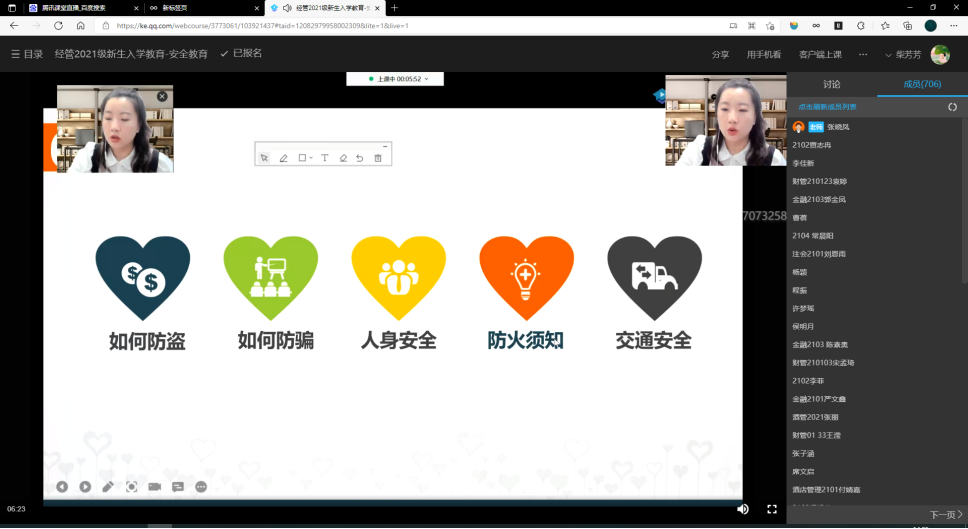 9月14日下午yl88858永利中国办公室主任张晓凤老师就消防安全、紧急避险、教学场地安全、人身与财产安全、个人信息安全等内容面向21级我院新生进行了安全教育。并用生活中的案例提醒同学们远离危险,保障安全。