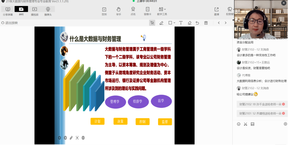 9月13日下午,金融服务与管理专业教研室主任赵静、大数据与财务管理教研室主任张梨花、大数据与会计教研室主任王瑞娟、大数据与会计(注会方向)专业负责人李玲、中加会计合作专业负责人张晓凤、酒店管理与数字化运营专业负责人李小闯分别进行了专业教育。内容主要包括专业介绍、人才培养方案解读、学校实训资源介绍、实训室安全教育等内容。
