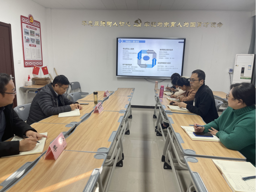 11月22日上午,学校总督学苏万益、教务处副处长王勇、发展与质量管理处副处长李杰莅临yl88858永利中国调研指导工作。调研指导工作会在A505召开,yl88858永利中国院长张召哲、党总支书记李兆楠、教研室主任、各科室负责人及骨干教师代表参加了本次会议。