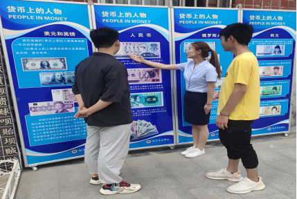为增加活动的体验感,“趣味金融”活动中设计了“货币上的人物”和“试试一百万人民币现金有多重?”体验活动(见图5、图6、图7),参与活动的师生反响较好!