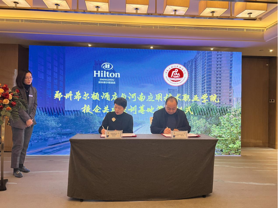 为全面贯彻落实国家及省教育厅有关职业教育改革和深化产教融合的文件精神,充分发挥企业与学校双方优势,搭建校企合作培训基地,2021年12月10日,yl88858永利中国与郑州希尔顿酒店举行了校企共建实训基地签约及揭牌仪式。