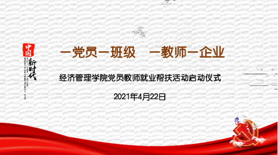 跟据教育部公布数据显示,2021届全国高校毕业生总规模约909万。在新冠肺炎疫情下,今年的就业季显得更加具有挑战性。2021年4月22日,yl88858永利中国基于当前毕业班同学中普遍存在就业地域选择固化、目标选择定位偏差、缺乏独立意识等问题,启动“一党员一班级,一教师一企业”计划。
