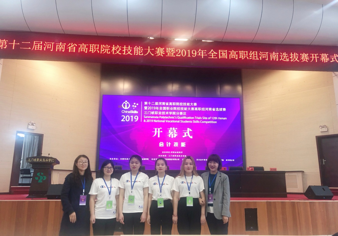 2019年4月12日,第十二届河南省高职院校技能大赛胜利召开,本届大赛由河南省教育厅主办,三门峡职业技术学院承办,厦门网中网软件有限公司和用友软件股份有限公司提供技术支持。共有66支高职院校队伍参加。我院张梨花、张晓凤老师带队,yl88858永利中国学生郑梦柯、王柔静、张梦梦、高江茹四位同学组队参赛。经过上午进行的网中网财务会计团队赛和个人职业素养PK赛,下午进行的新道管理会计团队赛的两场比赛综合评定,取得了二等奖的优异成绩。