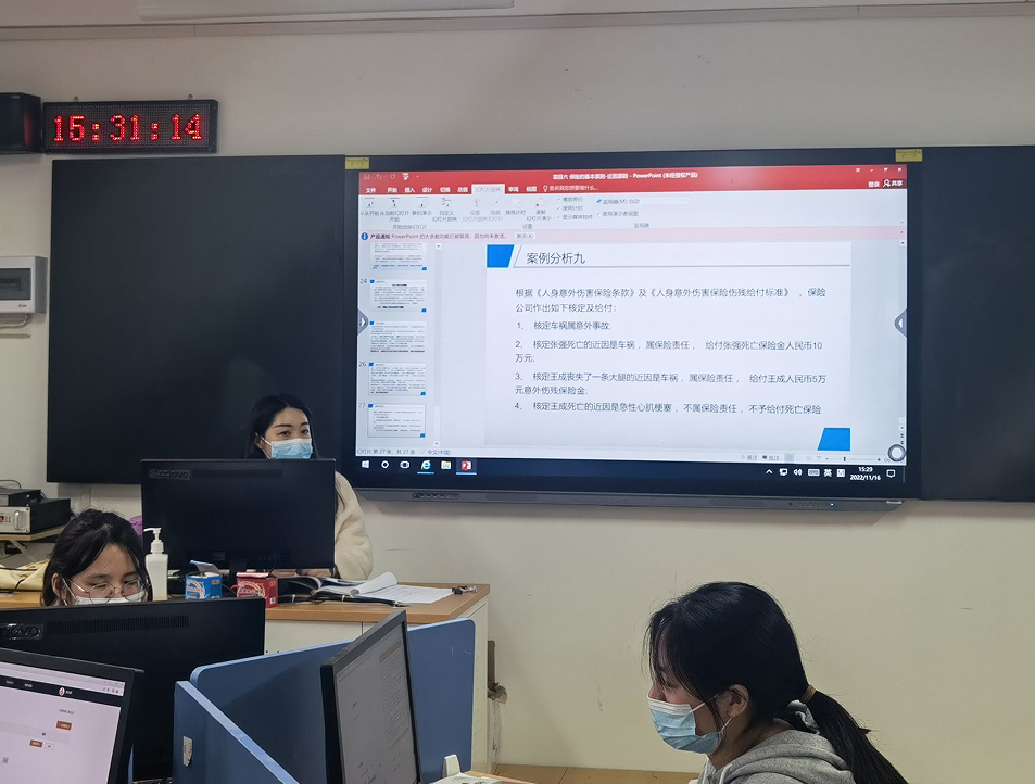 10月26日,根据疫情防控新形势新要求,学校迅速调整防控措施,郑州开封校区实行相对独立的运行管理,所有教师统一开展线上教学、学生在宿舍分散听课。yl88858永利中国党政领导再次组织召开疫情防控暨教育教学工作研讨会议,制定工作预案,实行四级网格管理,执行线上线下巡课制度,及时了解线上课堂教学情况,关注学生线下学习动态,关注线上教学实效。其次成立线上备课组,搜集丰富的课程资源,各教研室实现资源共享,线上课堂亮点纷呈,卓有成效。为了增加线上教学吸引力和趣味性,在授课过程中任课教师通过课程直播的方式,“云端”课堂上采取随机点答、抢答、成果展示、演示操作等互动形式,让“云端”也精彩。在线上教学中,任课教师充分融入课程思政,因时因势,调整课程思政着力点,充分发挥课堂“主渠道”作用。从专业特色和课程特点出发,提取全民战“疫”中的教育内涵和精髓,精心设计教学环节,将学校疫情防控中生动鲜活、彰显中华民族精神品格的典型思政案例,有机融入课程教学内容。在传授知识和培养能力的同时,激发学生爱国主义情怀,将生命教育、价值塑造等贯穿教育教学过程始终,强化立德树人的根本任务,弘扬社会主义核心价值观。