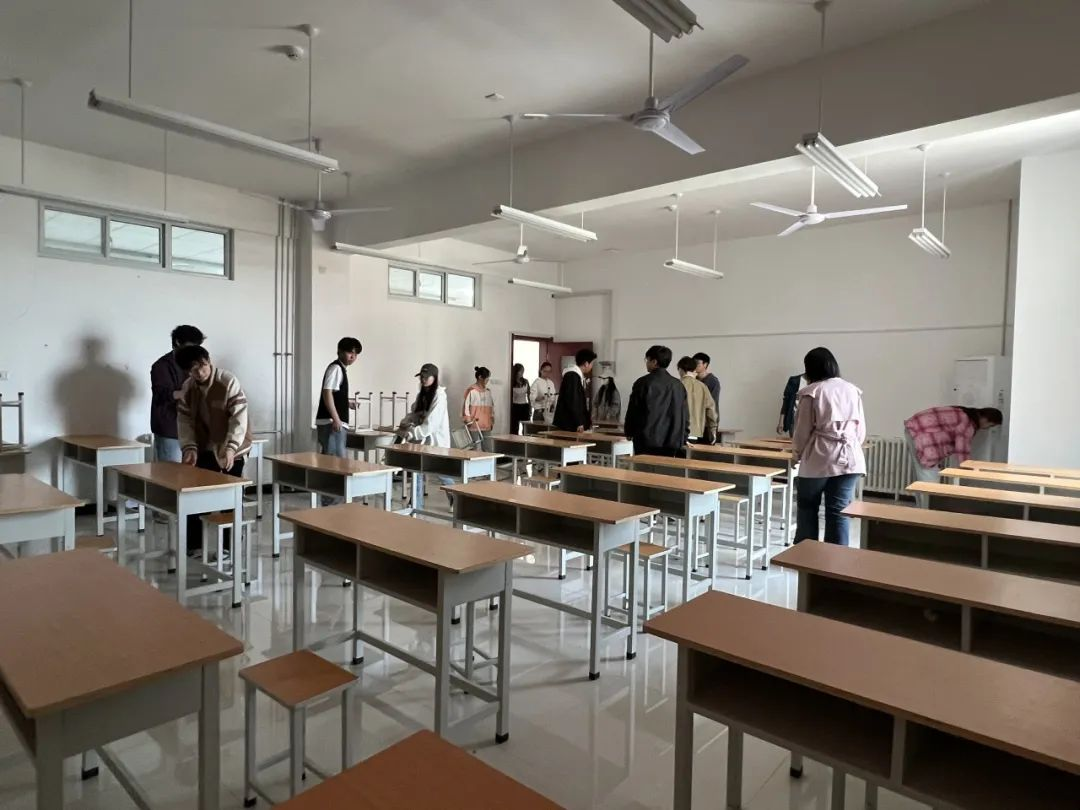 3月30日下午,在yl88858永利中国团总支的带领下,青年志愿者们各就各位、分工有序、相互配合,为布置整洁有序的考试环境付出辛勤劳动。打扫卫生、倾倒垃圾、墙面处理、摆放桌椅......各个环节有条不紊,考场环境焕然一新。