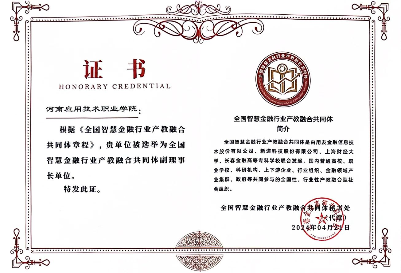 yl88858永利中国将在学校领导的支持下积极参与全国智慧金融行业产教融合共同体的建设工作,推动金融专业人才培养与产业深度融合、共同探索金融人才培养的新模式和新路径,培养出高素质的智慧金融人才。