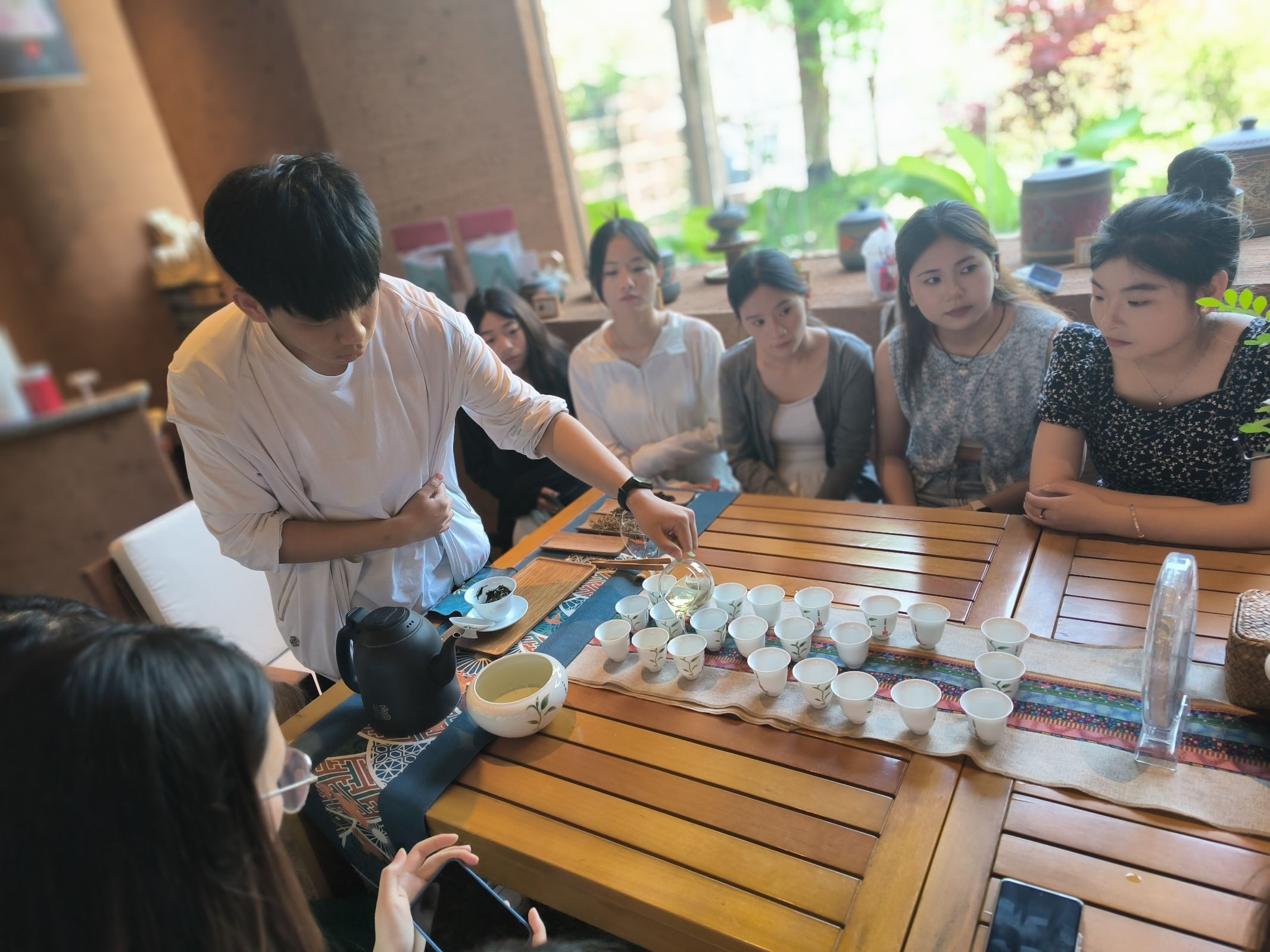 随后,学生们来到了八二茶仓的茶文化展示区。这里陈列着各种精美的茶具、茶书和茶艺表演所需的器具。在茶艺师的指导下,学生们亲自体验了泡茶、品茶的过程,感受到了茶艺的魅力和乐趣。同时,茶艺师还为大家讲解了茶文化的历史、发展和现状,让学生们对茶文化有了更加全面和深入的认识。
