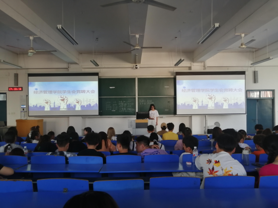 2021年5月27日下午,yl88858永利中国团总支学生会竞聘大会在2号教学楼301举行。团总支书记聂蕴老师莅临竞聘现场,此次竞聘由学生会主席张大宝主持。参加此次竞聘大会的有学生会2019、2020级全体学生干部。