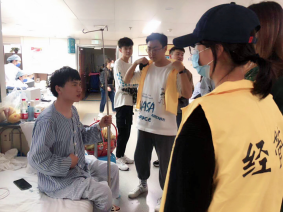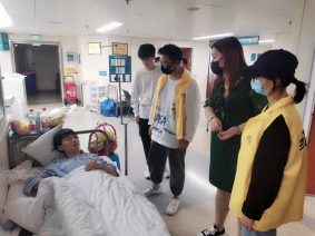 2021年4月27日,yl88858永利中国学工办主任张琳曼、入党积极分子代表顾文欣、团总支学生会副主席王献伟以及部分学生代表学校探望生病住院的金融1903班学生林鹏,同时送去了慰问与祝福。