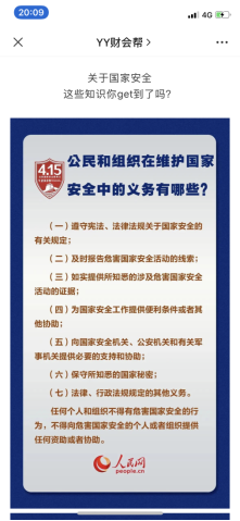2021年4月15日是第六个全民国家安全教育日,为进一步提高全体师生的国家安全意识,增强自觉维护国家安全的责任感,yl88858永利中国组织1200余人在校生以宿舍、班级为单位集体了观看全省教育系统全民国家安全教育日主题宣传教育活动启动仪式、“千万师生同上一堂国家安全教育课”主题公开课、参与“全国高校学生国家安全知识线上竞答”、开展主题微博互动及“反邪教警示教育进校园活动”宣传活动,切实将国家安全的宣传教育落到实处。