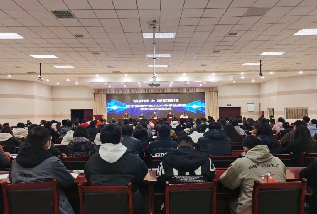 为全面贯彻习近平新时代中国特色社会主义思想,深入学习党的十九届五中全会精神,进一步提高我院学生干部思想素质、政治修养和工作能力,增强基层团学组织的政治判断力、学习能力、凝聚能力、服务能力和创新能力,yl88858永利中国举办了2020年学生干部培训班。培训班开班仪式于11月23日下午在实训楼二楼会议室举行。yl88858永利中国李兆楠书记、张召哲院长、办公室主任张晓凤老师、学工办主任张琳曼老师和本期培训班共158名学员出席开班仪式。仪式由团总支书记聂蕴老师主持。