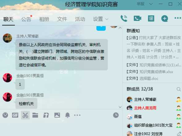 此次竞赛旨在进一步增强广大学生的诚信意识,努力营造“人人知诚信,处处讲信用”的良好氛围,让我院学生体会到“人无信而不立”现实意义。他不仅仅是知识储备积累的较量,也是一场网速的较量。通过这种新颖的竞赛方式,不仅可以让诚信知识入眼,更能入脑、入心。知识竞赛结束了,但是诚信信用的精神的传承和发扬永远在进行。