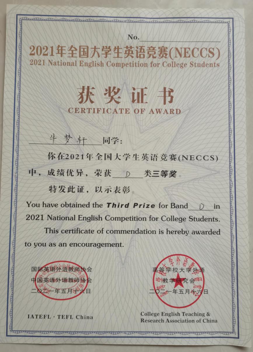 注会1902班是一个团结向上的班集体。同学们有强烈的集体荣誉感,该班曾获学校先进班集体。班级学风浓郁,得到了任课老师的一致好评。全学年专业课平均成绩年级第一。5人在大一、大二期间已通过全国会计专业技术初级资格证书。该班刘世涛同学在2021年河南省高等职业教育技能竞赛智能财税赛项中,以总分河南省第一名的成绩获得一等奖,在2021年全国职业院校技能大赛高职智能财税比赛中,获得三等奖,刘世涛本人获得了2021年国家奖学金。该班罗艺萌同学在全国个税计算职业技能大赛总决赛中取得二等奖的优异成绩。班内多位同学获得2021年全国大学生英语竞赛(NECG5)、2021全国高等职业院校发明杯大学生创新创业大赛、2020年长三角全球创意设计大赛、2020全国大学生职业发展大赛等各项奖,班级形成了比学赶帮超的氛围。