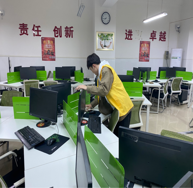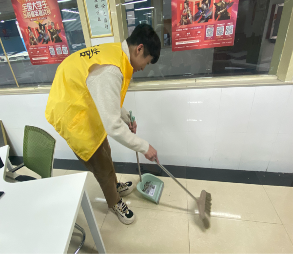 活动伊始,热情的志愿者们分成多个小组,拿着扫把、拖把、抹布等工具分工打扫。大家兴致高昂,团结互助,共同完成打扫工作,通过活动体验到劳动艰辛和乐趣,升华了对雷锋精神的认识,尽心竭力为师生营造更舒心的学习环境。劳动过程中,参与的同学们展现出阳光向上,精神饱满的良好状态。经过一番打扫,实调室变得干净整洁,井井有条,焕然一新,就连走廊的垃圾以及墙壁、窗台上的灰尘也被彻底打扫干净。明亮的玻璃、整齐的讲台、摆放有序的器材,一切都显得规范有序、洁净如洗,给人耳目一新的感觉
