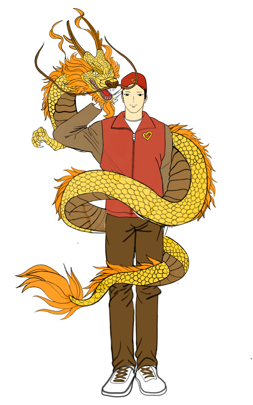 设计理念:中间身着红色志愿者的衣服人,代表参加社会实践活动做志愿者的大学生。志愿者敬着礼寓意大学生坚持党的召;一条金色的龙围绕身旁,害意着大学生做为龙的传人的骄傲。同时,龙和人形成了一个中字,寓意出彩中原。