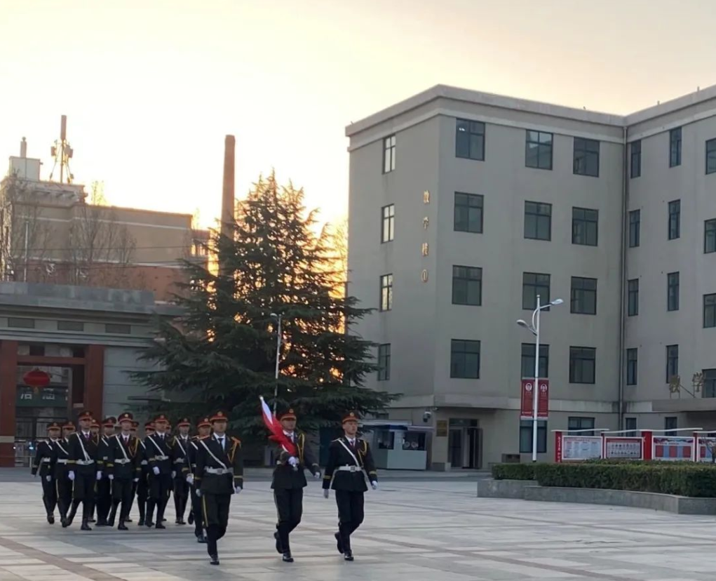 日出朝霞满天,万物苏醒。迎着朝阳,伴着铿锵有力的口号,国旗护卫队迈着沉稳矫健的步伐,昂首挺胸走向国旗台。