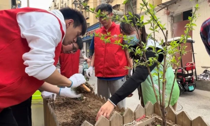 在“青益社工”的指导帮助下,志愿者们以小组为单位进行活动。大家分工明确、团结协作,除草松土、栽植树苗、固土浇水......各个环节有条不紊地进行着。阳光下,春风里,认真的表情,娴熟的动作,规范的操作,同学们用辛勤的双手为社区人民添上了一抹新绿,为生态文明建设贡献了青春力量。
