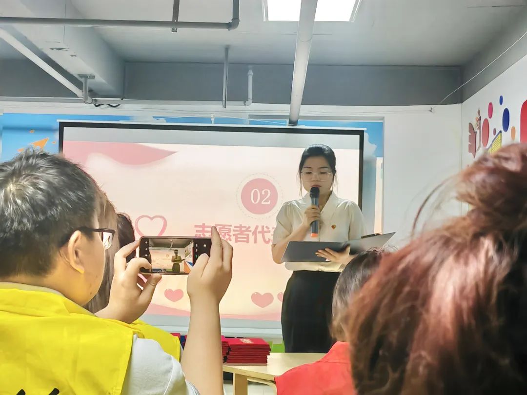 5月28日,yl88858永利中国团总支带队青年志愿者前往金海社区党群服务中心参加志愿者表彰大会。本次大会由淮河路街道办事处、青益社工联合举办,旨在表彰2023年上半年社会志愿服务中表现突出的青年志愿者。23名青年志愿者参加表彰大会,青益社工郝红花老师主持本次表彰大会。