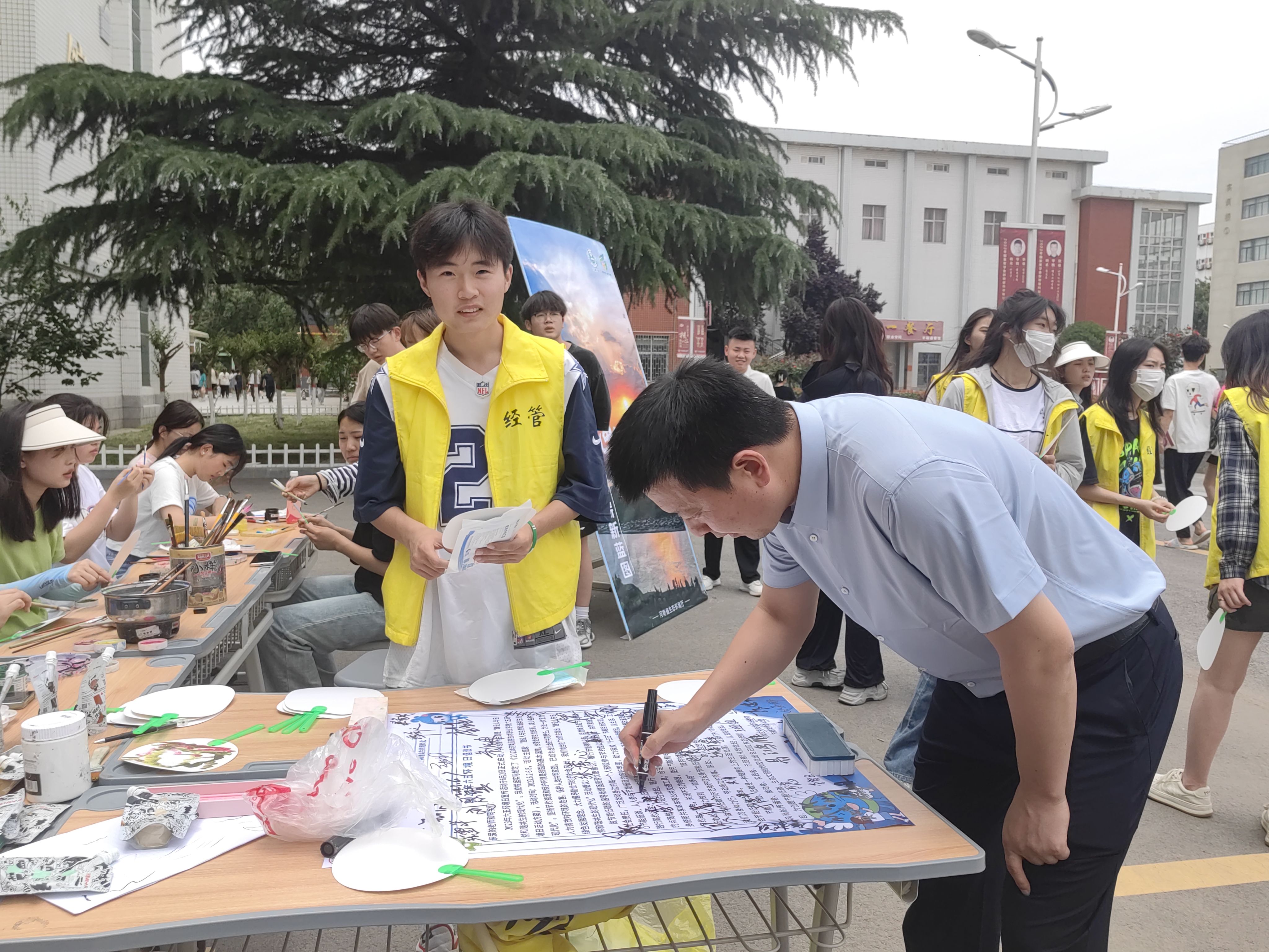 同时,现场还开展了扇子手绘活动,大家用画笔展现出对美好环境的理解与思考,生动绘就出心中的环保理想及我国的生态文化,综合运用艺术创作和实践体验发挥宣传教育作用,助力我校“十四五”节能目标的实现,为建设美丽中国做出新的更大贡献。