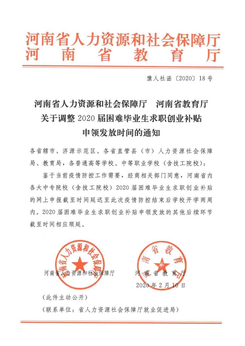 @2020届毕业生,求职创业补贴申报时间延后至学校开学两周内