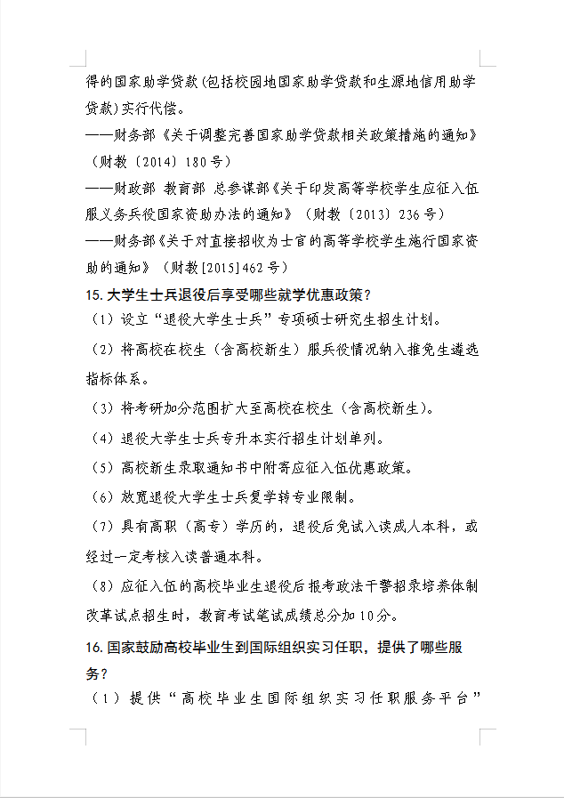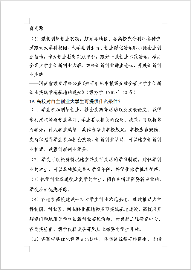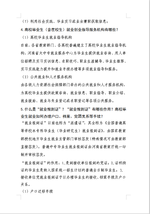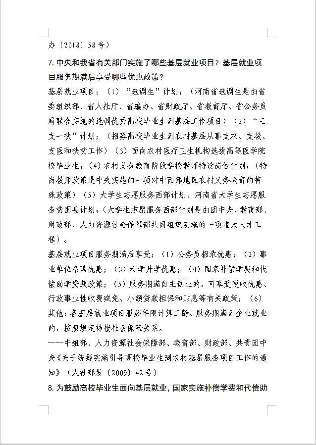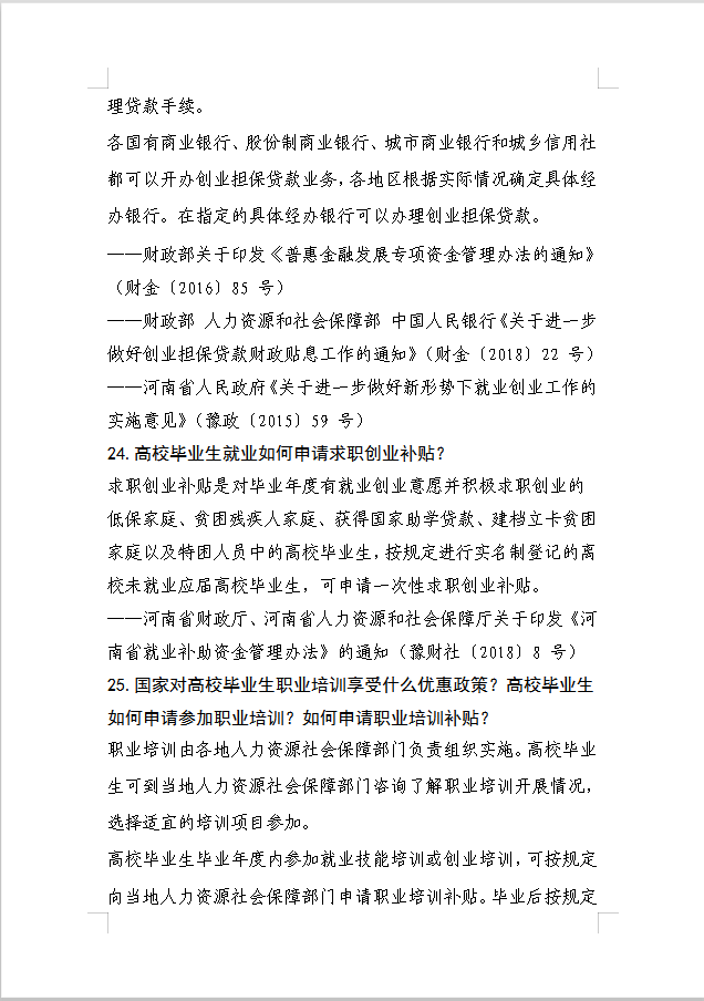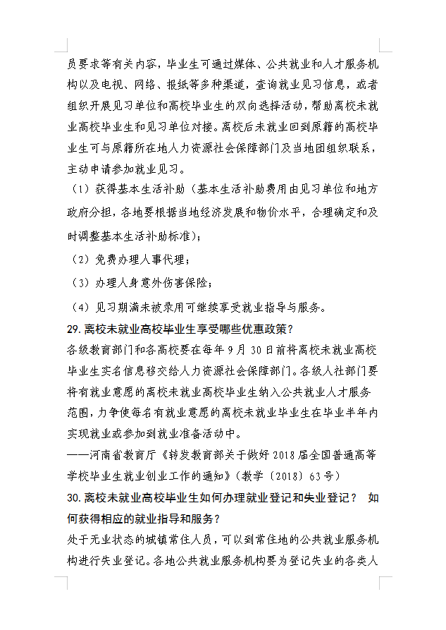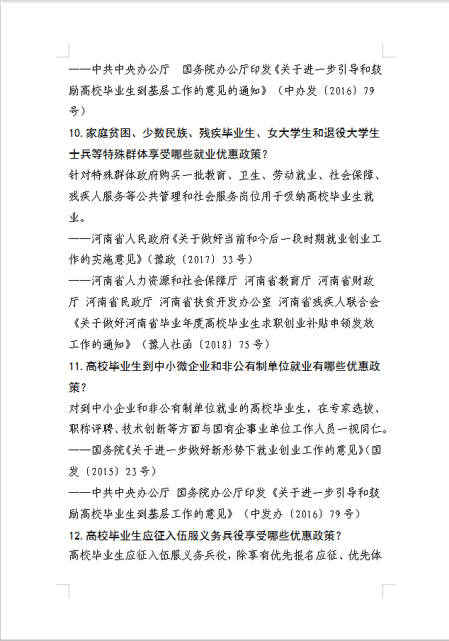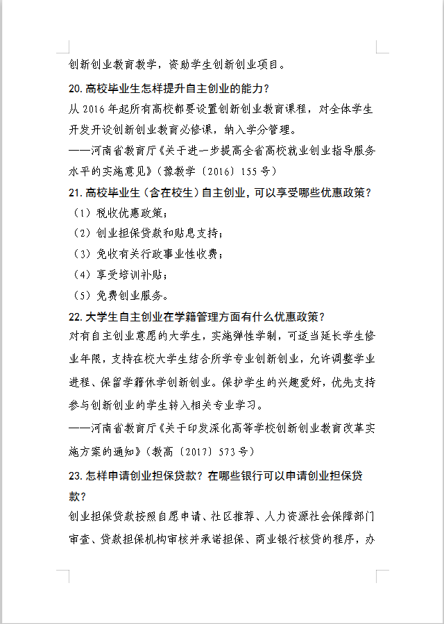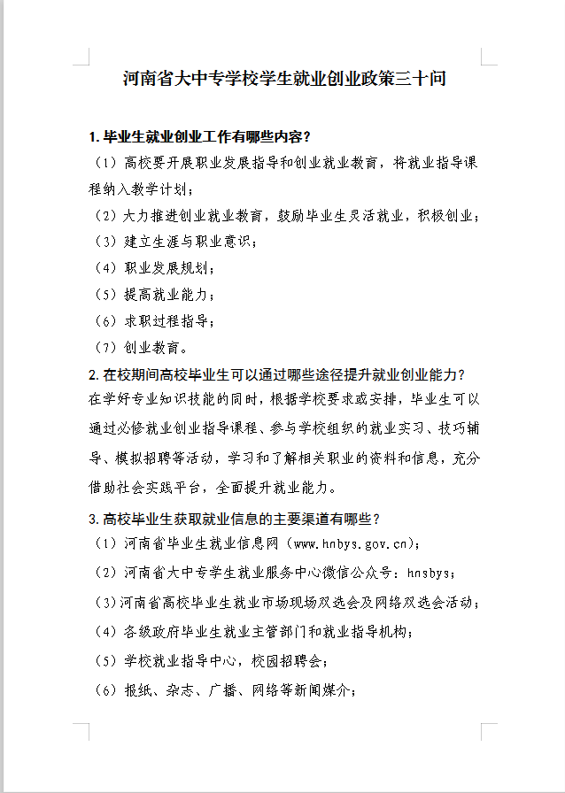 河南省大中专学生就业创业政策三十问