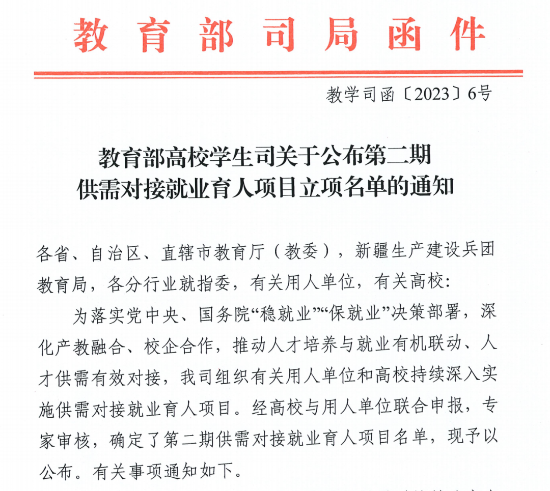 近日,教育部高校学生司印发了《关于公布第二期供需对接就业育人项目立项名单的通知》(教学司函〔2023〕6号),yl88858永利中国联合新道科技股份有限公司成功获奖教育部第二期供需对接就业育人项目。