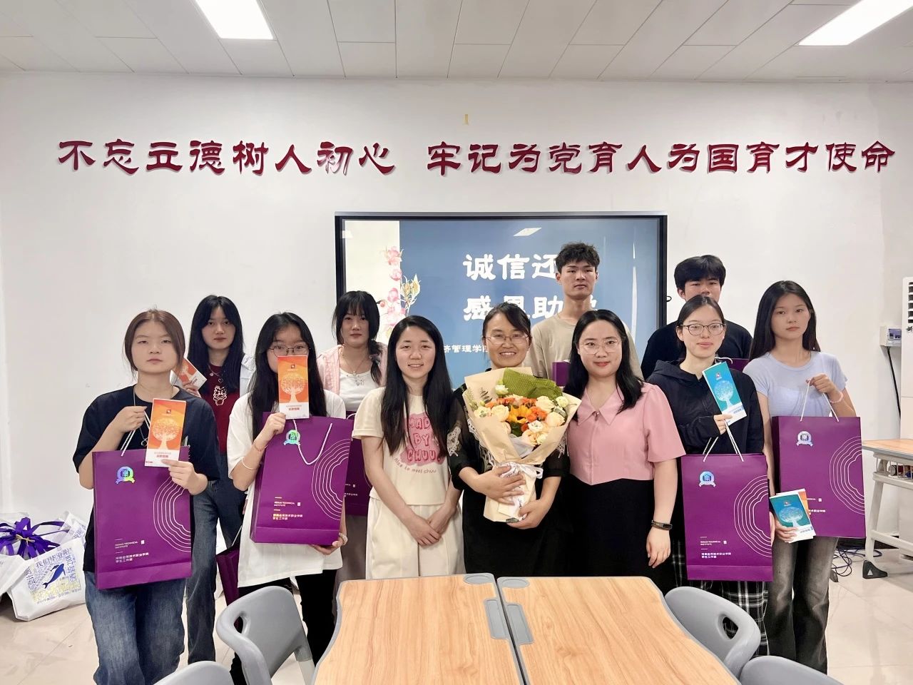 活动前,辅导员为受助学生发放《生源地信用助学贷款还款指南》《高校国家助学贷款还款指南》小册子,一起学习有关助学贷款还款期限、还款利息、偿还方式、提前还款和逾期还款等内容。在座谈会上,王盼红对国家助学贷款和诚信还款的意义进行了说明,希望同学们对偿还助学贷款工作予以高度重视,保证资助工作有序进行和良性发展。期间,她还分享了优秀毕业生受助事迹,希望同学们心怀感恩、诚信做人、诚信谋事,在新的人生征程中砥砺前行、再创佳绩。最后,王盼红一一为提前还贷款学生发放学校学工部定制的纪念礼品,祝贺大家毕业快乐、前程似锦!