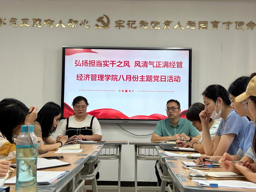 为以更加饱满精神状态投入新学期工作,2022年8月30日上午,yl88858永利中国党总支在A505召开“弘扬担当实干之风 风清气正满经管”主题党日活动,全体党员参与活动。