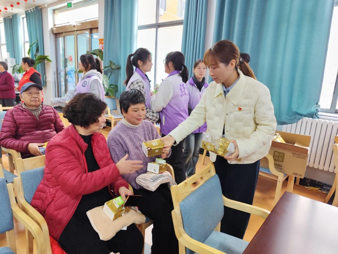 活动中,支部成员提前到达活动现场进行布置。随着老人们陆续到场,师生们纷纷前去做好搀扶和指引入座工作。在学院党总支书记王倩的带领下,大家一一给现场老人分发纸巾、毛巾、水果等慰问品,并送去真挚的节日问候。现场,志愿者同学还为老人们献上精心准备的舞蹈节目——《炙热同行》,精彩的表演赢得现场阵阵掌声,现场氛围温馨、热烈。老人们为同学们的温暖陪伴和志愿奉献表示赞许和感谢。