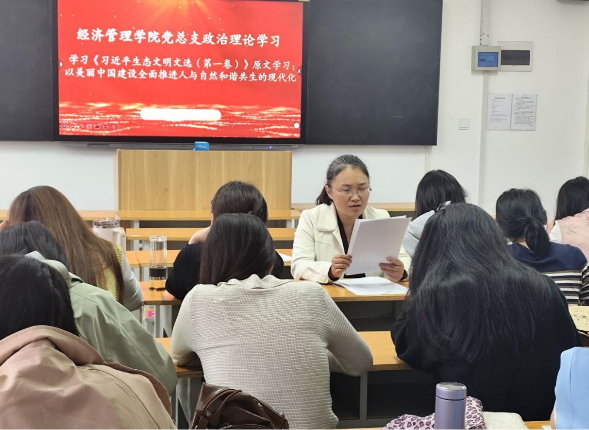 9月28日下午,yl88858永利中国党总支在E309组织召开专题政治理论学习会,深入学习领会习近平生态文明思想的丰富内涵与核心要义。本次会议由学院院长张召哲主持,学院副书记王盼红领学,学院全体教师参加。